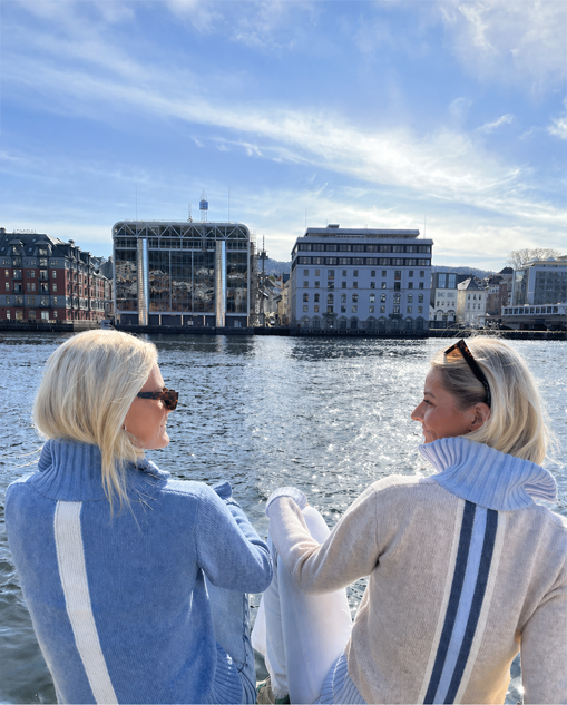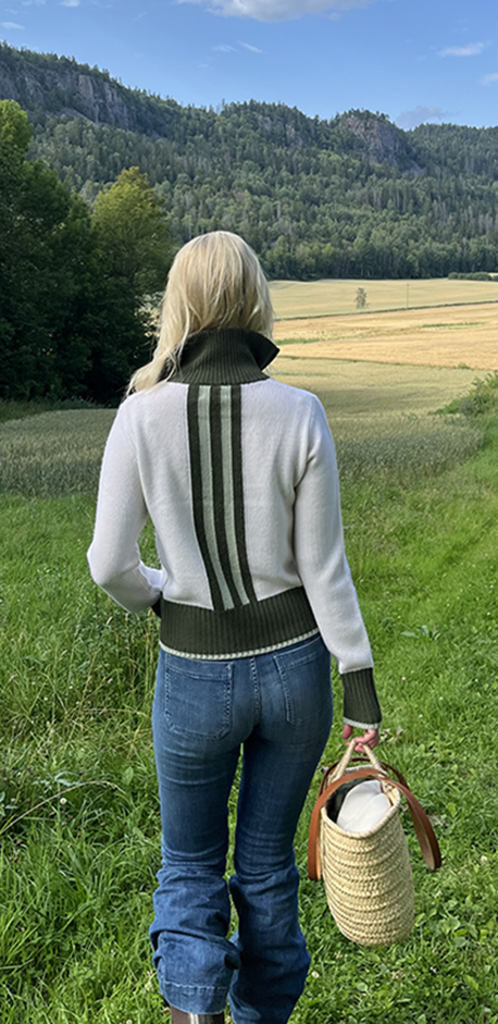 Ingen logoer. Ingen støy. Bare tidløse plagg i kashmir og merinoull, kjennetegnet av vår signaturstripe på ryggen og nøye utvalgte fargekontraster. Et personlig preg som gjør hver modell unik.